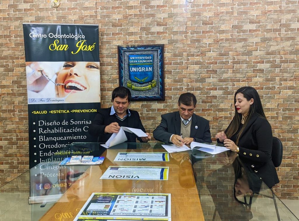 La Universidad Gran Asunción celebra un nuevo convenio de cooperación interinstitucional con el Centro Odontológico San José. Este acuerdo se da con el objetivo de que docentes, funcionarios y alumnos puedan acceder a beneficios de descuentos odontológicos en la clínica.