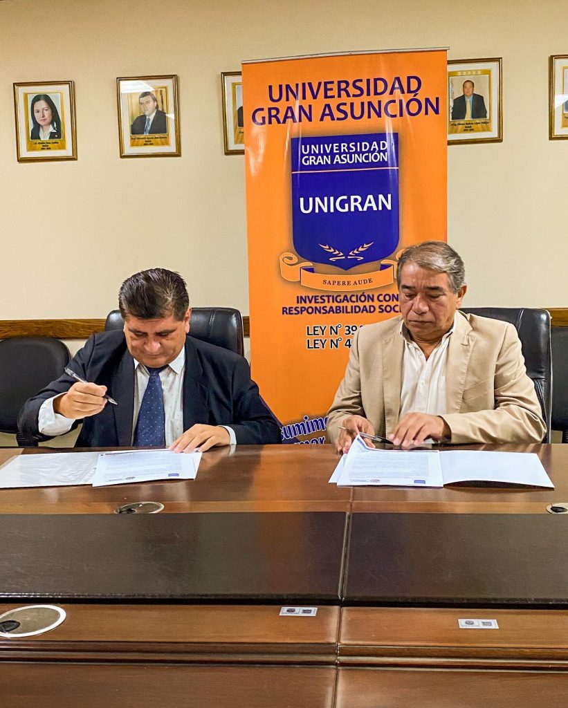 Participaron en la firma el Dr. Juan Antonio Denis Pintos, Rector de la UNIGRAN y el Dr. Rafael Zárate; Secretario General de la municipalidad.